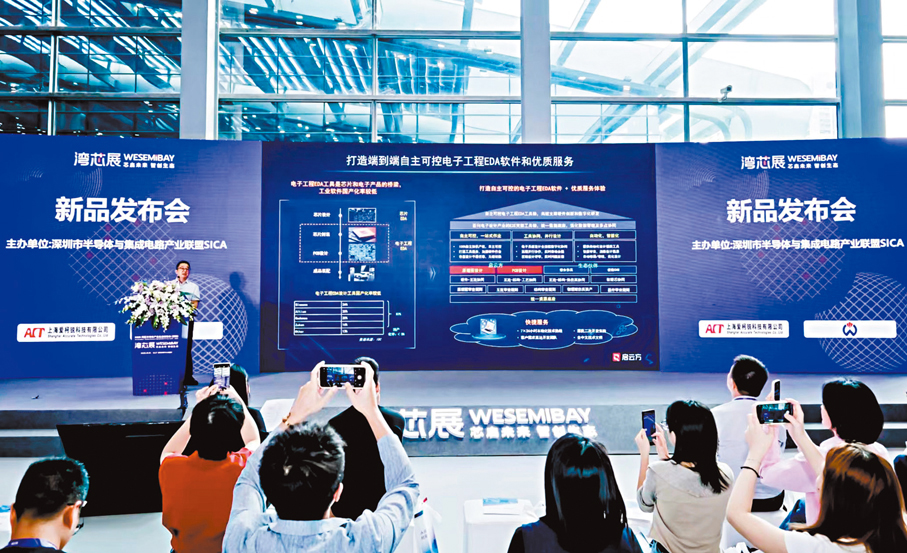 香港文匯報綜合記者李昌鴻、毛麗娟及新華社報道:面對美國進一步圍堵中國半導體產業發展,中國芯片企業不斷研發新技術、新產品,突破壁壘競速前行。15日在深圳揭幕的「2025灣區半導體產業生態博覽會」(下稱「灣芯展」)上,不少國內知名半導體企業帶來最新產品亮相。超高速實時示波器發布,新一代電子工程EDA設計軟件產品亮相,……一系列新技術、新產品持續迸發新氣象,中國製造的韌性與活力躍然眼前。