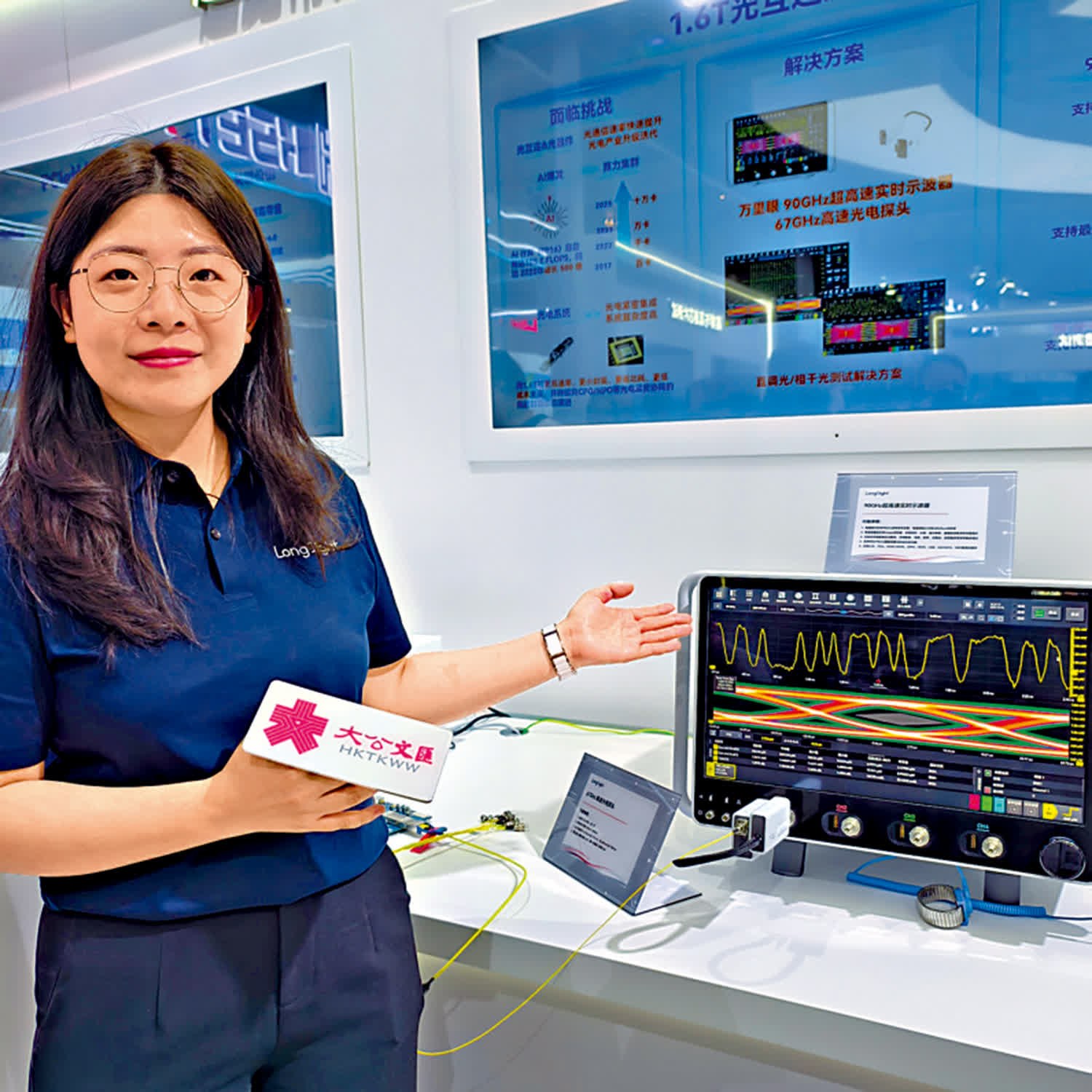 (大公報 記者 毛麗娟)15日,第二屆灣區半導體產業生態博覽會(「灣芯展」2025)在深圳開幕,中國自主研發的新一代超高速實時示波器發布,將國產示波器性能提升到500%,其帶寬突破90GHz、達到國際先進水平,這標誌着全球電子通信產業迎來超高速信號「中國標尺」。