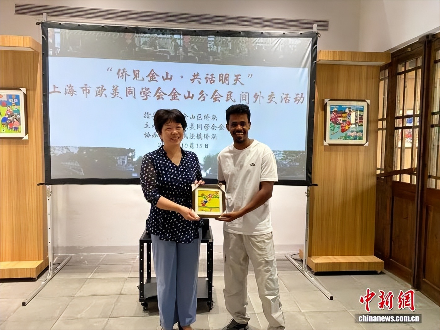 中新网上海电(范宇斌)“侨见金山 共话明天”——上海市欧美同学会金山分会民间外交活动15日在上海市金山区枫泾古镇举行。来自上海交通大学、东华大学、枫叶国际学校的来华留学生和在金山的外籍友人共同游古镇、寻古韵,沉浸式感受海派文化、江南文化、民俗文化的魅力。