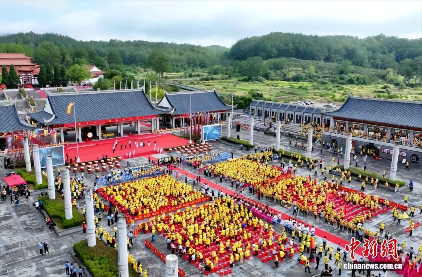 中新社福建宁化电 (雷朝良 黄馨怡)第三十一届客家文化节16日在“客家祖地”福建省宁化县石壁镇举行,海内外近90个客属社团代表与社会各界人士近3800人齐聚一堂。