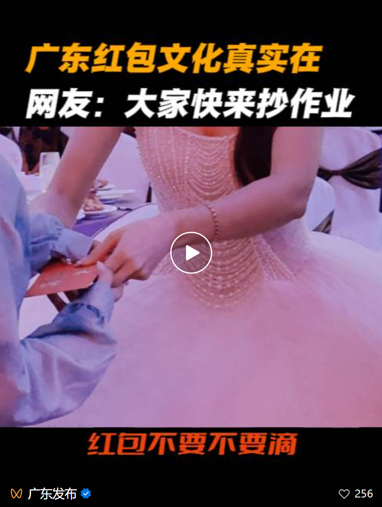 不仅是佛山,在广东多地,都有这样的习俗,新人将红包折角代表已经收下。因为大家觉得,“礼”应该是一种美好的祝愿和感谢,红包送礼应该回归表达祝愿本身。婚宴更多的是,希望大家一起见证幸福,能来就是最大的“礼”。