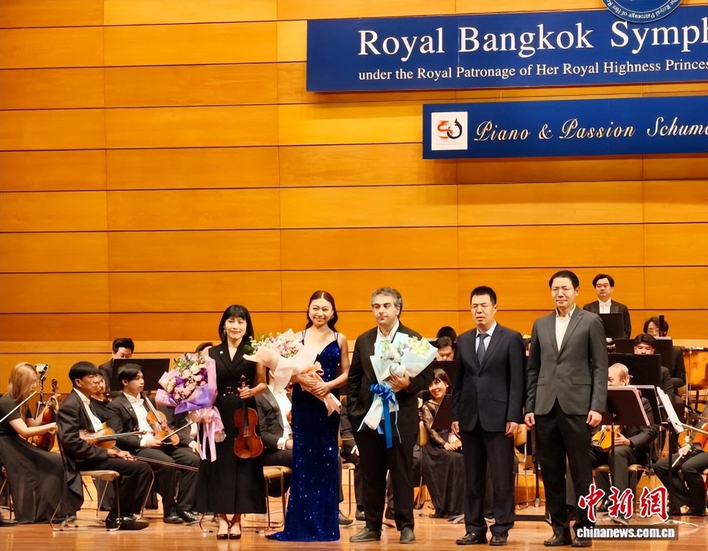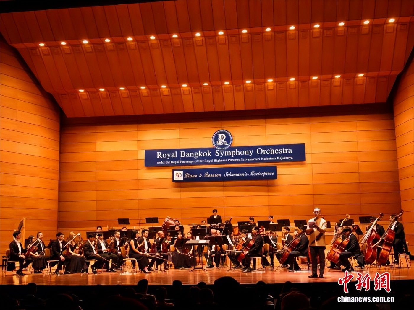 中新网曼谷电 (记者 李映民)为庆祝中泰建交50周年,泰国皇家曼谷交响乐团基金会携手泰国中国企业总商会,于18日晚在泰国文化中心隆重呈献《钢琴与热情——舒曼的杰作》音乐会,共庆中泰两国源远流长的友谊,深化文化交流互鉴。