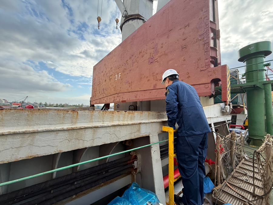 该轮在码头装载作业期间,吴淞海事局张华浜海巡执法大队检查人员对作业人员资质、作业器材完好性等进行逐一核验,确认相关条件均符合安全作业要求,全力保障装载作业安全有序推进。