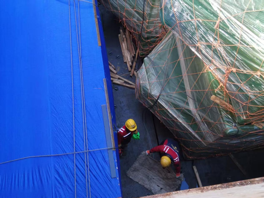 针对舱内电焊等高危作业环节,检查人员结合船舶结构特点与货物特性,指导船方及作业单位规范操作流程,强调舱盖作业期间必须使用大尺寸灭火毯覆盖易燃材料,以充分防范火灾风险。