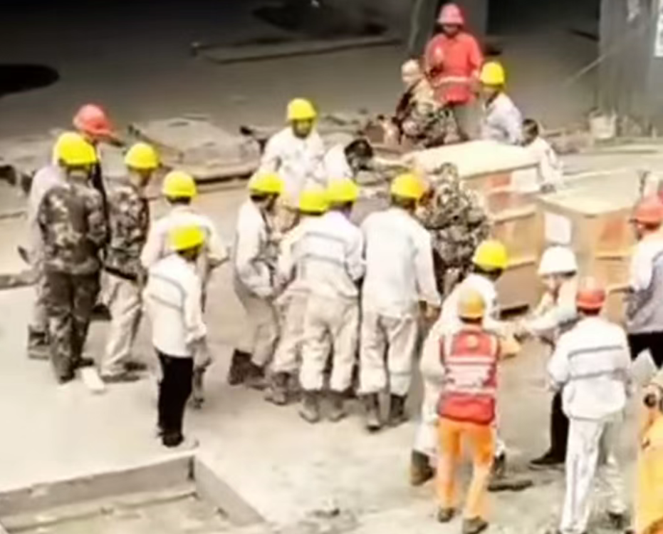 根据视频发布者描述及画面内容,冲突最初发生在两名操作机器的中国劳工之间:一名头戴白色头盔的男子突然推搡并斥责头戴黄色头盔的男子,黄头盔男子随即还击,双方很快从言语争执升级为肢体冲突。视频中可见,白头盔男子率先用拳头击打对方,随后不顾周围人员劝阻,捡起附近的管材击打黄头盔男子头部;镜头转换后,十几名头戴黄色头盔的工人围向一名躺倒在地的人士,多人对其拳打脚踢,部分情绪激动的工人还使用头盔击打倒地者,冲突场面较为激烈。