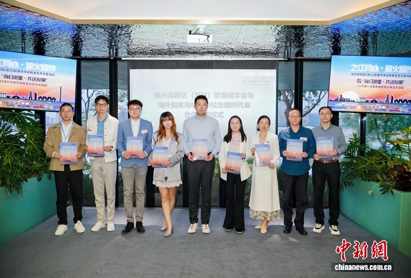 杭州高新区(滨江)欧美同学会与海外知名高校在浙校友组织代表合作签约仪式现场。海外知名高校在浙校友组织联盟供图