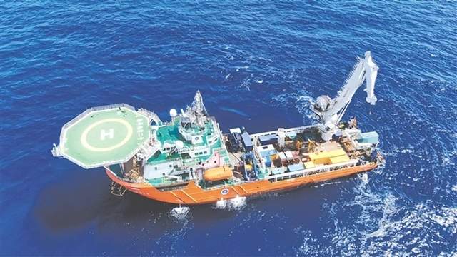 “海洋地质二号”科考船搭载“海马”号深海遥控潜水器在目标海域进行“源火”采集。