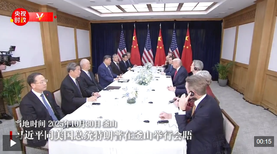 当地时间10月30日,国家主席习近平在釜山同美国总统特朗普举行会晤。