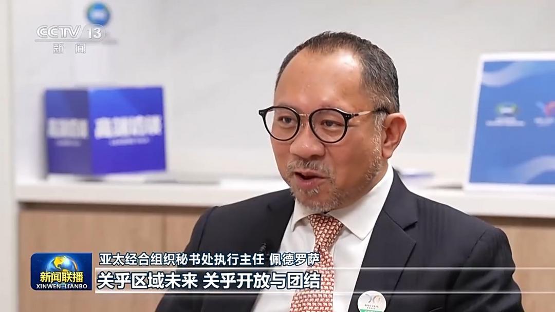 亚太经合组织秘书处执行主任 佩德罗萨:习近平主席关于亚太合作的观点极其重要,关乎区域未来,关乎开放与团结。习主席强调要践行开放联通精神,互联互通正是中国持续推动的领域。当前各经济体都经历着产业转型,多边贸易体制亟需维护,中国“十五五”规划目标明确,具有前瞻性。我们希望汲取中国的发展经验,扩大亚太地区合作。
