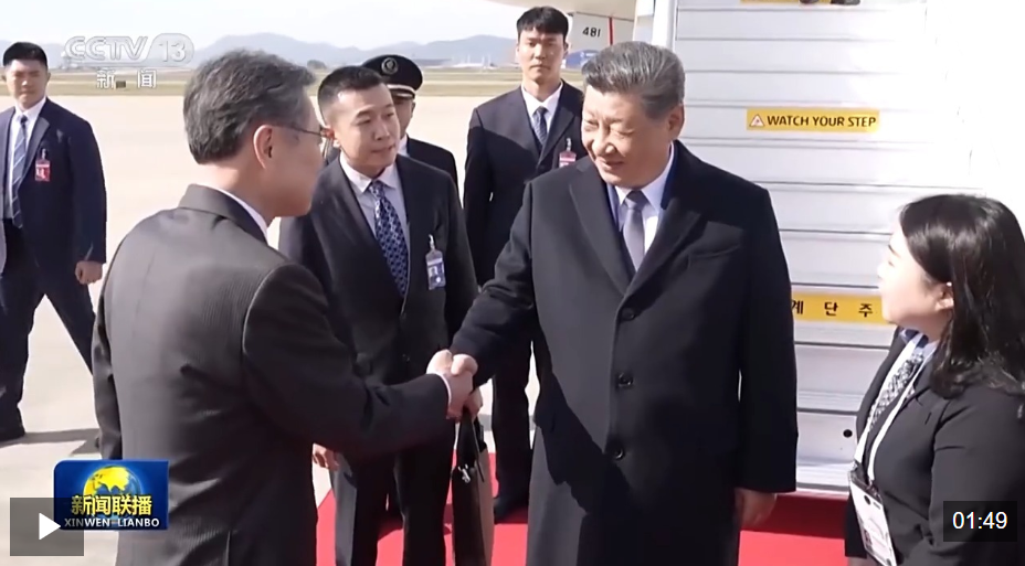 10月30日上午,习近平主席乘专机抵达韩国釜山金海国际机场。飞机落地后不久,中美元首会晤举行。这也是习主席抵达韩国后的第一场活动。