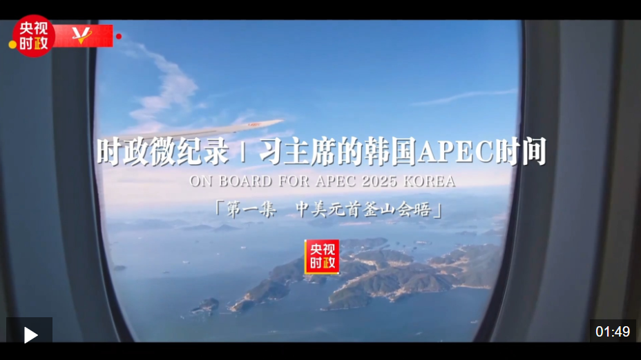 中國新聞國際新聞亮點關注 时政微纪录丨习主席的韩国APEC时间:第一集 中美元首釜山会晤 2025 年 10 月 31 日 当地时间10月30日上午,国家主席习近平乘专机抵达韩国,应大韩民国总统李在明邀请,出席亚太经合组织第三十二次领导人非正式会议并对韩国进行国事访问。随后,习近平同美国总统特朗普举行会晤。 在这场举世瞩目、长达约100分钟的中美元首会晤上,习近平主席的发言掷地有声:“两国做伙伴、做朋友,这是历史的启示,也是现实的需要”“中美两国完全可以相互成就、共同繁荣”“双方应该算大账”“让中美关系这艘大船平稳前行”,传递掌舵领航、稳控大局的责任与担当,字字千钧。在釜山,中美关系发展再次迎来重要时刻。 央视网