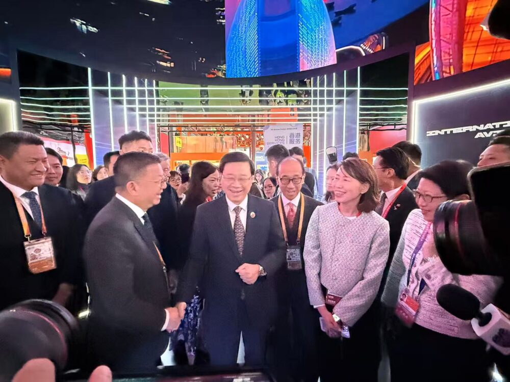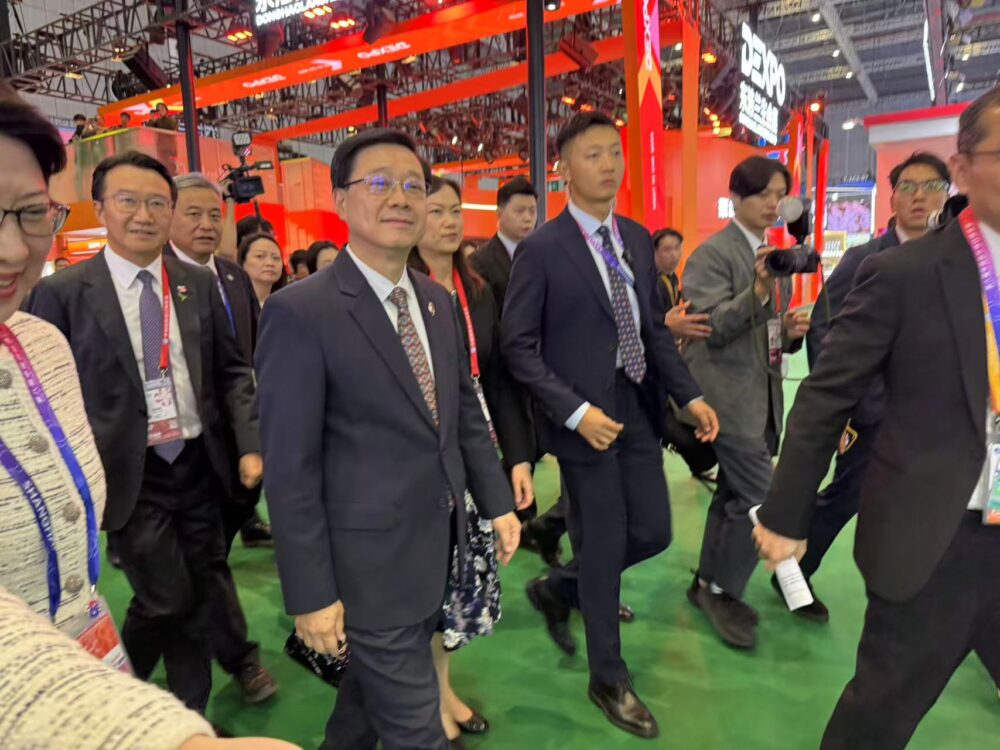 香港特區行政長官李家超今日(5/11)率領特區政府代表團在上海國家會展中心出席第八屆中國國際進口博覽會開幕式。其後,李家超陪同李強巡視中國館香港展區。展區以「內聯外通‧璀璨新篇」為題,展示香港在「一國兩制」下享有國家機遇和國際機遇的雙重疊加優勢,在多個領域排名國際前列,發展動能不斷增強和民生條件不斷改善的良好發展勢頭。據悉,今年有380家香港企業參展,涵蓋不同行業,推廣香港優質商品和服務,數目創歷來新高