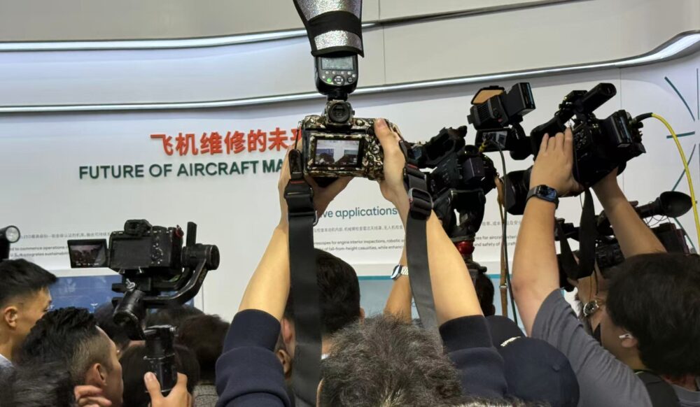 大批香港和內地的記者聞風而至,把太古展區圍的水泄不通。圖源:亮點國際