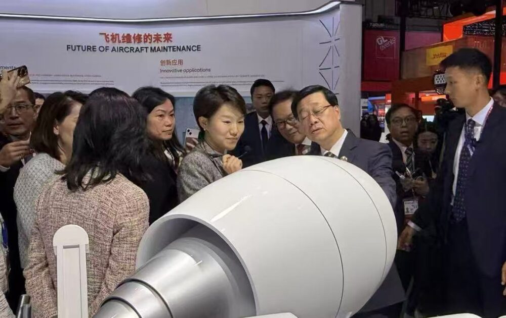 李家超向傳媒表示,場內氣氛很好。他又指,香港很支持進博會,而不同參展商均胸有成竹,認為可以利用這個平台推廣產品。李家超對香港企業參展的成績很有信心,並寄予厚望。圖源:亮點國際