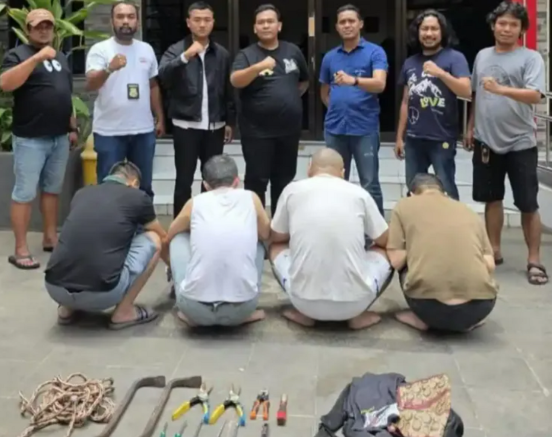 11 月上旬,警方锁定嫌疑人藏匿于直葛市一家旅馆后,迅速制定抓捕方案并实施突袭。抓捕行动中,警方在旅馆房间内当场查获四名嫌疑人,同时起获大量作案工具,包括多根撬棍、数卷绳索、不同型号的螺丝刀等,以及尚未转移的涉案现金。据警方初步清点,现场查获的现金金额已达数亿印尼盾,后续还在进一步核实其余涉案资金的流向。