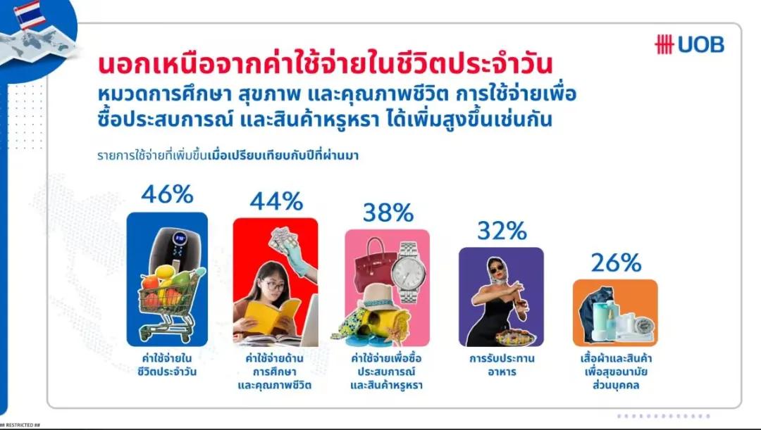 泰国头条新闻社讯 11月9日,泰国大华银行发布其与波士顿咨询公司合作进行的《2025年东盟消费者信心调查报告》显示,除日常开支和教育、健康与生活品质外,消费者购买体验与奢华产品的支出同样大幅上升,占比38%,排名第三。其中,最受欢迎的体验消费前三名依次是:娱乐、餐饮、旅游。这一数据体现出体验消费越来越被视为“必需品”,尤其是新生代与月收入20万泰铢以上的高收入群体。