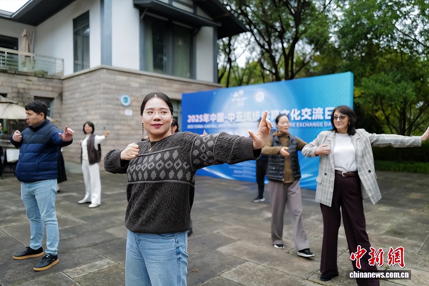 中新网杭州电(张煜欢)9日,2025年中国-中亚传统体育文化交流日活动在浙江杭州举行。来自哈萨克斯坦、乌兹别克斯坦等中亚国家的友人,与来自多所高校的中国师生齐聚西溪湿地,共同习练中国传统养生功法八段锦,在柔和缓慢的一招一式中,深度体验传统养生功法的独特魅力。