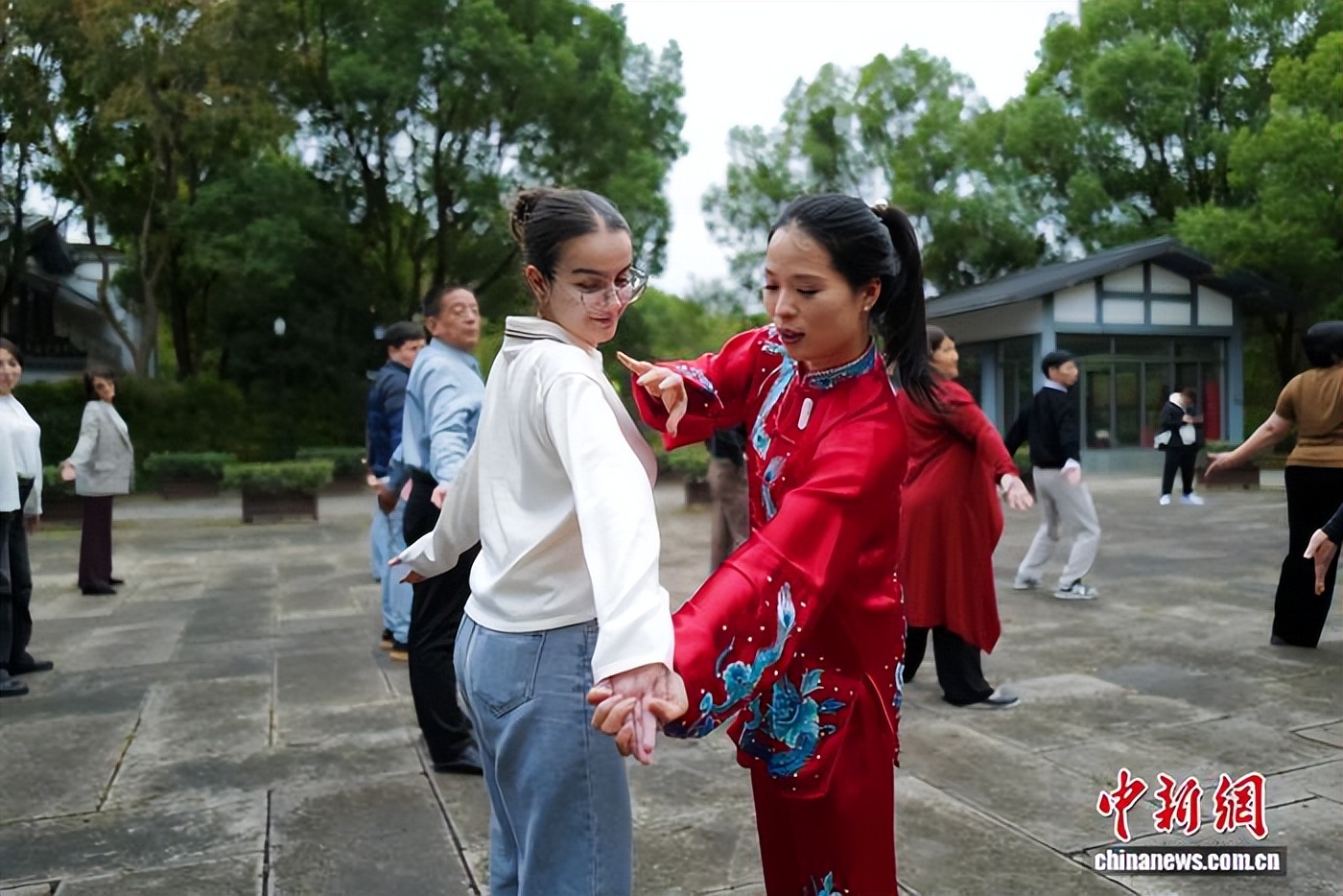 中亚友人杭州同练八段锦 感受传统养生功法魅力