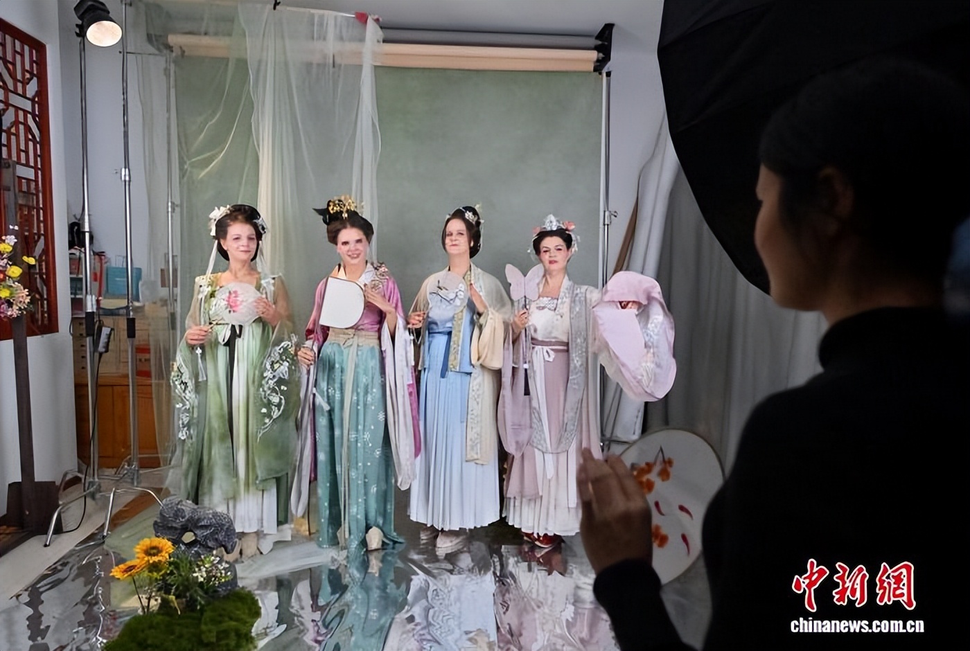 11月9日,在吉林长春的一家汉服体验馆,德国友人身着精美汉服拍摄写真。近年来,汉服日益受到外籍人士青睐。该馆已为超百名外籍人士提供汉服体验和拍摄服务,让他们在沉浸式拍摄中,了解中国传统文化。中新社记者 张瑶 摄