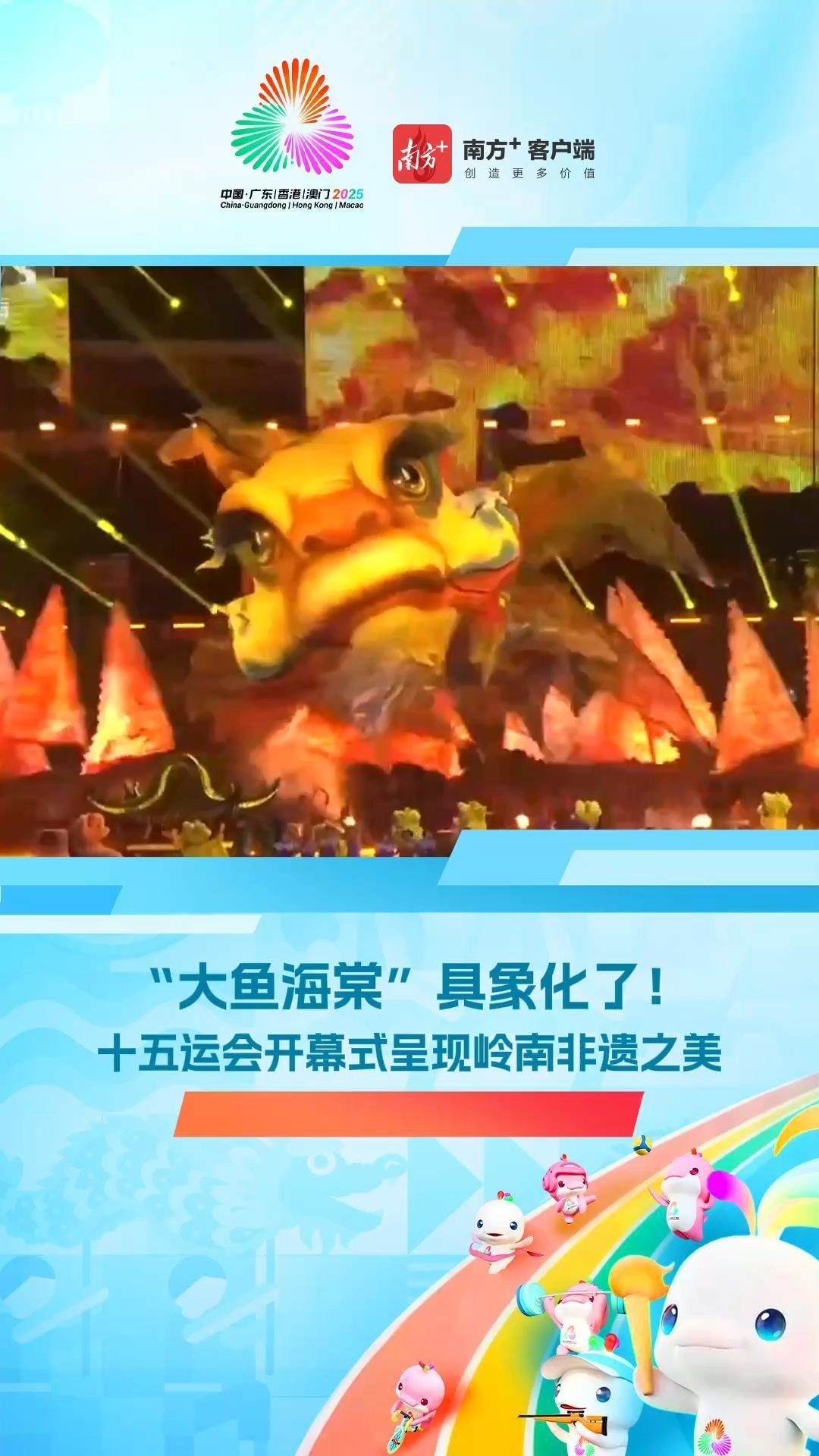 11月9日晚,十五运会开幕式在广东奥林匹克体育中心举行。璀璨缤纷的岭南文化符号齐聚一堂,用“水”的灵动、“海”的磅礴,讲述了一场跨越时空、扬帆起航的“圆梦”故事。