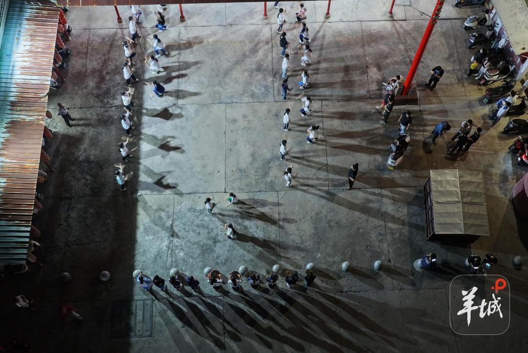 夜幕降临,汕头市潮阳区文光西门英歌队训练基地里,英歌队队员们认真训练