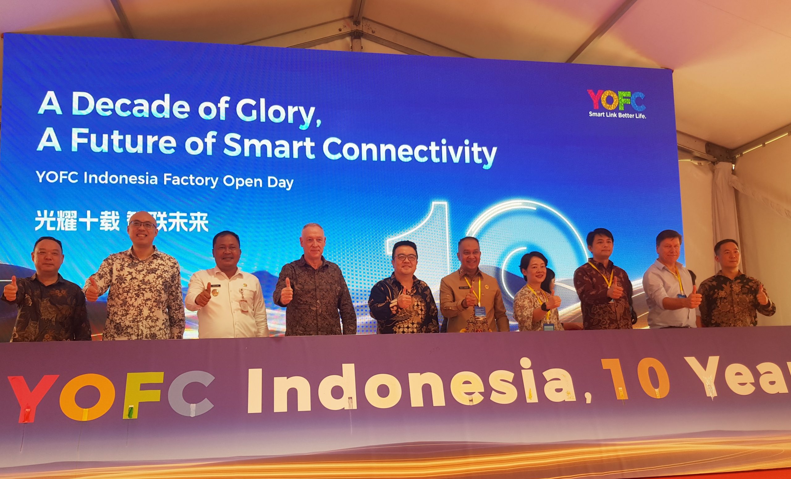 2025年11月13日周四,长飞光纤印尼公司(YOFC Indonesia)在位于西爪省加拉璜县Surya Cipta工业区里的工厂内庆祝成立十周年。这次十周年成立庆典被长飞光纤印尼公司视为与现有合作伙伴共同支持印尼数字化转型的重要时刻。