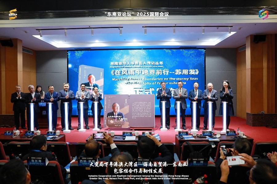 论坛开幕式期间还举行了“东南亚华人华侨名人传记丛书”首册传记《在风雨中跨界前行——苏用发传记》的发布仪式。“东南亚华人华侨名人传记丛书”由吴坚教授担任总主编、国文出版社出版,首册丛书聚焦印尼杰出华人企业家苏用发先生,系统细致展现其在印尼兴办华文教育、在中国捐资助学的善行义举。