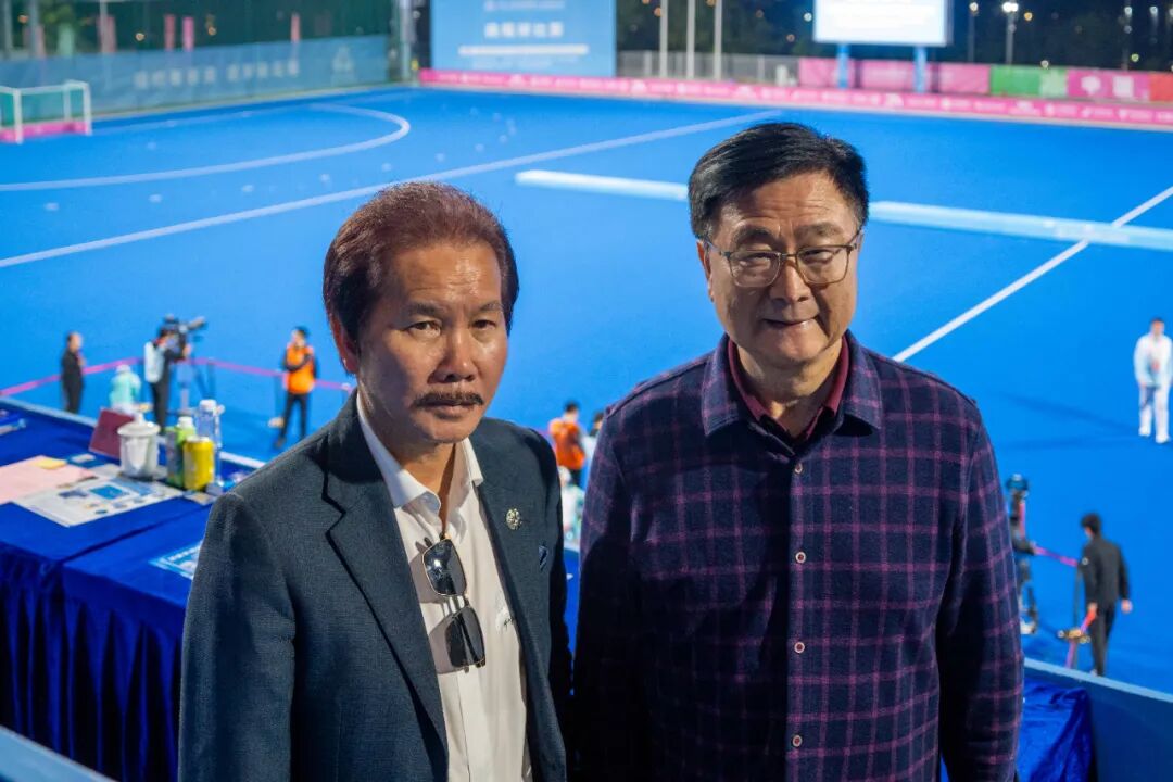 第十五届全国运动会曲棍球项目男子组决赛11月15日在云浮体育公园举行,许鸿飞前往现场,感受曲棍球运动激情。