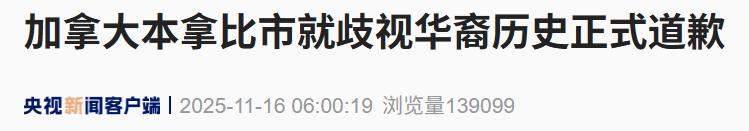 当地时间11月15日,加拿大不列颠哥伦比亚省大温哥华地区本拿比市就历史上针对华裔的歧视进行正式道歉。