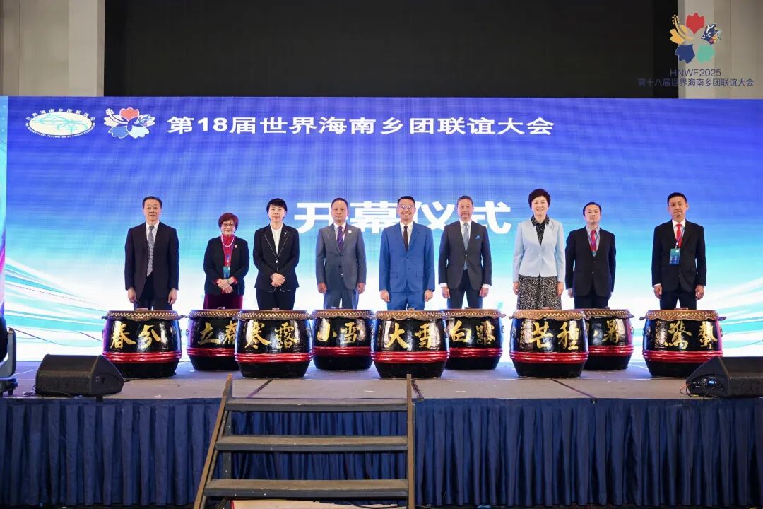 马来西亚首相代表国会议员李健聪、中华海外联谊会副会长陈旭、海南省委常委、海南海外联谊会会长尹丽波、中国驻槟城总领事馆总领事周游斌、广东省海南联谊会会长、世界海南乡团联谊会第十七届理事会理事长蔡春萌、马来西亚海南会馆联合会总会长、第十八届世界海南乡团联谊大会主席拿督杨克浩、第十八届世界海南乡团联谊大会筹委会主席拿督陈行昌和马来西亚海南总商会总会长、马来西亚海南会馆联合会永久荣誉会长暨执行顾问拿督林秋雅出席开幕典礼。
