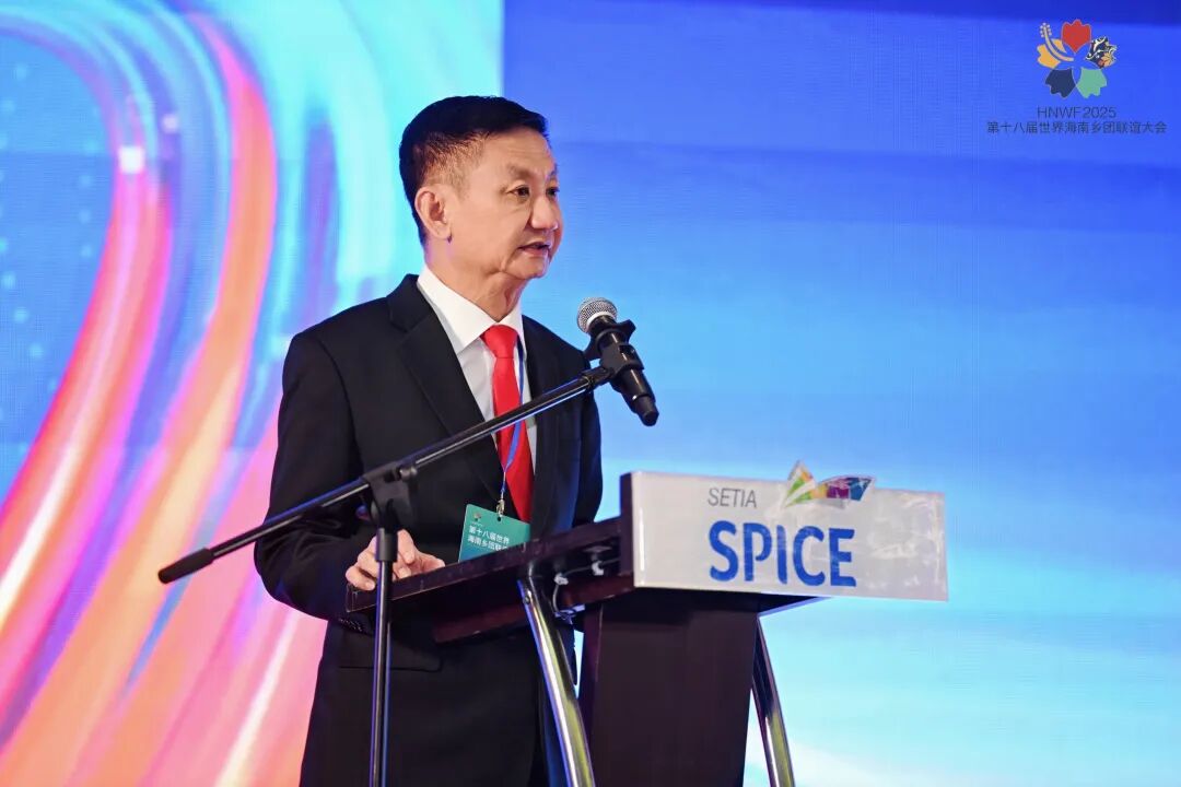 马来西亚海南会馆联合会总会长、第十八届世界海南乡团联谊大会主席拿督杨克浩致辞表示,回望1989年首届世界海南乡团联谊大会的诞生,三十余载春秋,大会从最初的萌芽到今天的发展壮大,见证了海外海南人从艰苦创业到事业辉煌的奋斗轨迹。无数杰出的海南企业家从摊贩起步成长为侨商楷模,用行动诠释了海南人自强不息的精神。遍布全球的海南会馆,不只是联谊的场所更是乡亲的依靠和庇护所,无论是初到异乡的同乡还是遭遇困境的乡亲,会馆都是他们最坚实的后盾。今天的海南正在以自由贸易港的姿态走向世界,这不只是海南的机遇,更是全体全球海南人的机遇与责任。自贸港的发展,需要全球海南人的参与。海南乡亲们需要思考:如何整合全球海南人的经济力量、如何推动商务发展与创新产业、如何守护与传承海南的文化和如何培养更多有担当的年轻一代。海南乡亲们当以全球的眼光谋划海南的发展,以合作共赢的姿态开创未来,建设一个休戚与共的命运共同体。