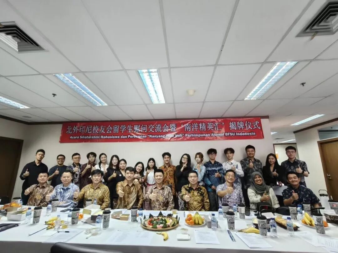 2025 年 11 月 15 日上午,北京外国语大学印度尼西亚校友会在雅加达 The East Building 9 楼 BPC 律师事务所,成功举办留学生慰问交流会暨 “南洋精英汇” 揭牌仪式。中国驻印尼使馆、中资机构代表,北外爪哇语师资、印尼语专业 24 级学生,在印尼的北外校友及印尼籍北外留学生等 30 余人齐聚现场,共叙情谊、共话发展。