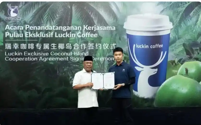 受访者 供图为保证产品品质与价格的稳定供应,今年3月,瑞幸与印尼邦盖群岛县政府签署合作备忘录,将该岛作为生椰拿铁原料椰浆的专属原产地,并将其命名为“瑞幸咖啡专属生椰岛”。未来5年,瑞幸将联合合作伙伴在该岛采购约100万吨椰子原料。