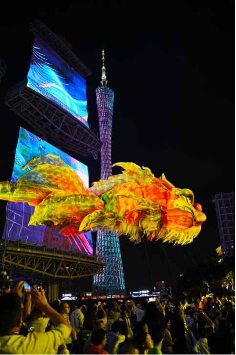 Festival Cahaya Internasional Guangzhou 2025 dimulai pada malam hari tanggal 16 November. Selama upacara penerangan, elemen-elemen dari upacara pembukaan Pekan Olahraga Nasional ke-15 – termasuk kura-kura laut raksasa, daun pisang, dan bunga kapuk – kembali tampil megah sebagai bagian permanen dari festival tahun ini. Selain itu, Menara Guangzhou, Menara Timur (Chow Tai Fook Financial Centre), dan Menara Barat (International Finance Centre) menyinkronkan tampilan cahaya mereka, mengikuti kontur dinamis langit kota.