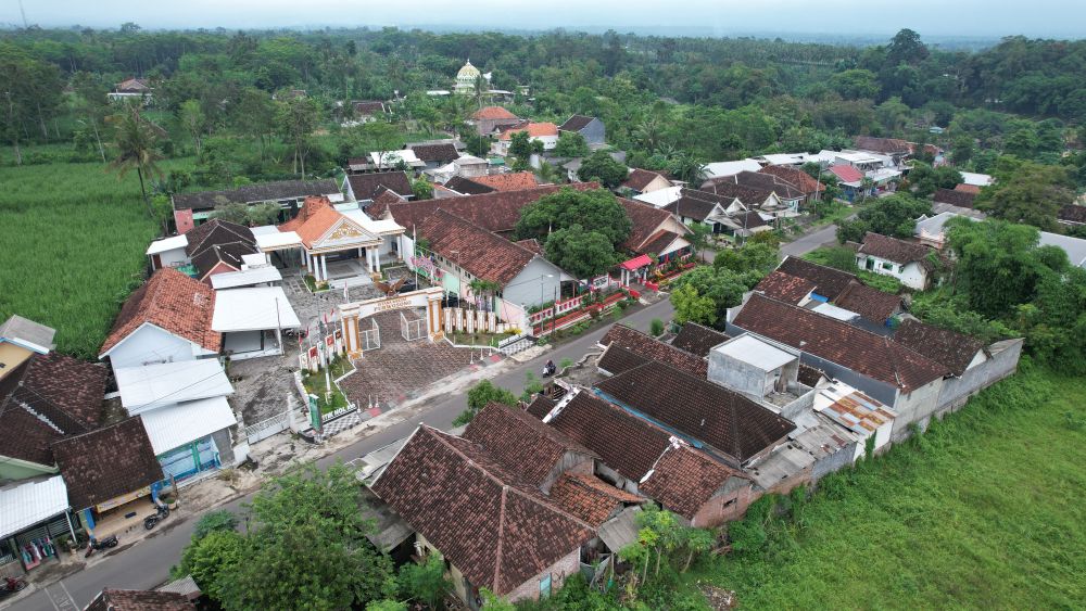 ↑这是11月13日在印度尼西亚东爪哇省布尔沃索诺村拍摄的村公所及周边景象(无人机照片)。