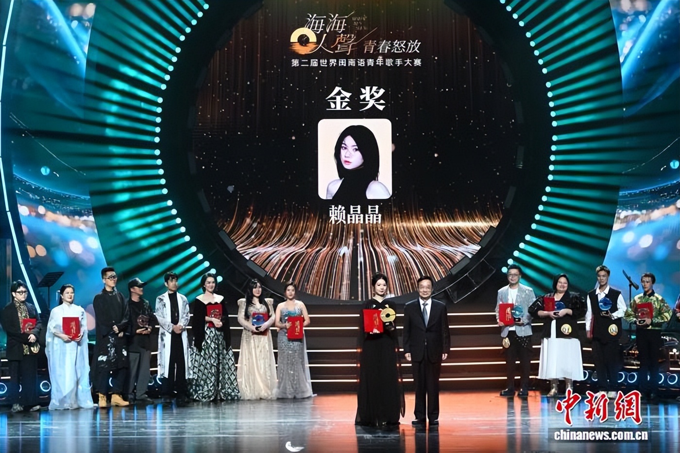 中新社泉州电 (记者 孙虹)“海海人声·青春怒放”第二届世界闽南语青年歌手大赛总决赛暨颁奖典礼21日晚在福建泉州举办。经过两轮竞演,中国福建选手赖晶晶夺得金奖,印度尼西亚选手李镁琴、中国福建选手沈浪夺得银奖,马来西亚选手吴宜宵、陈永义和菲律宾选手施美妮获得铜奖。
