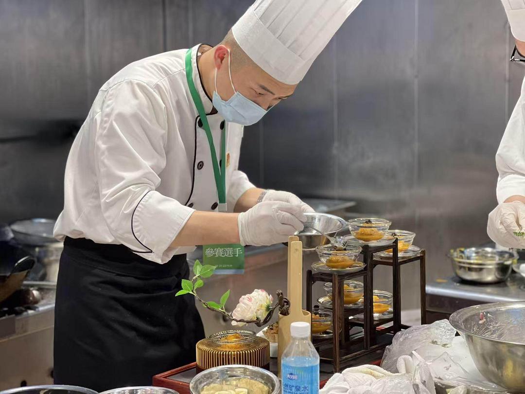 羊城晚报记者在比赛中了解到,每支参赛队伍2名选手需在90分钟内完成“规定菜(鸡食材)+自选菜(虾/鱼食材)”的制作。