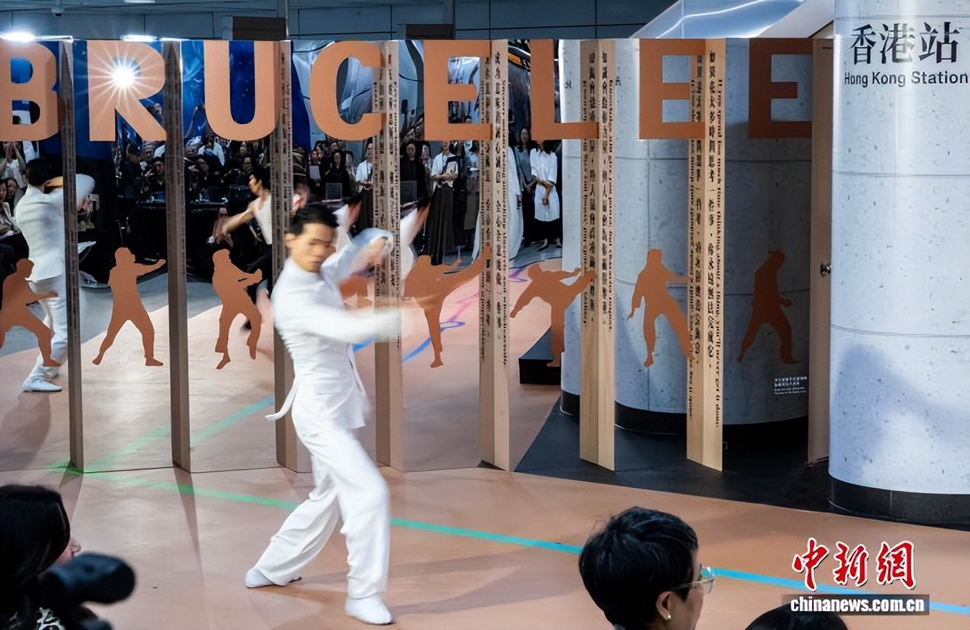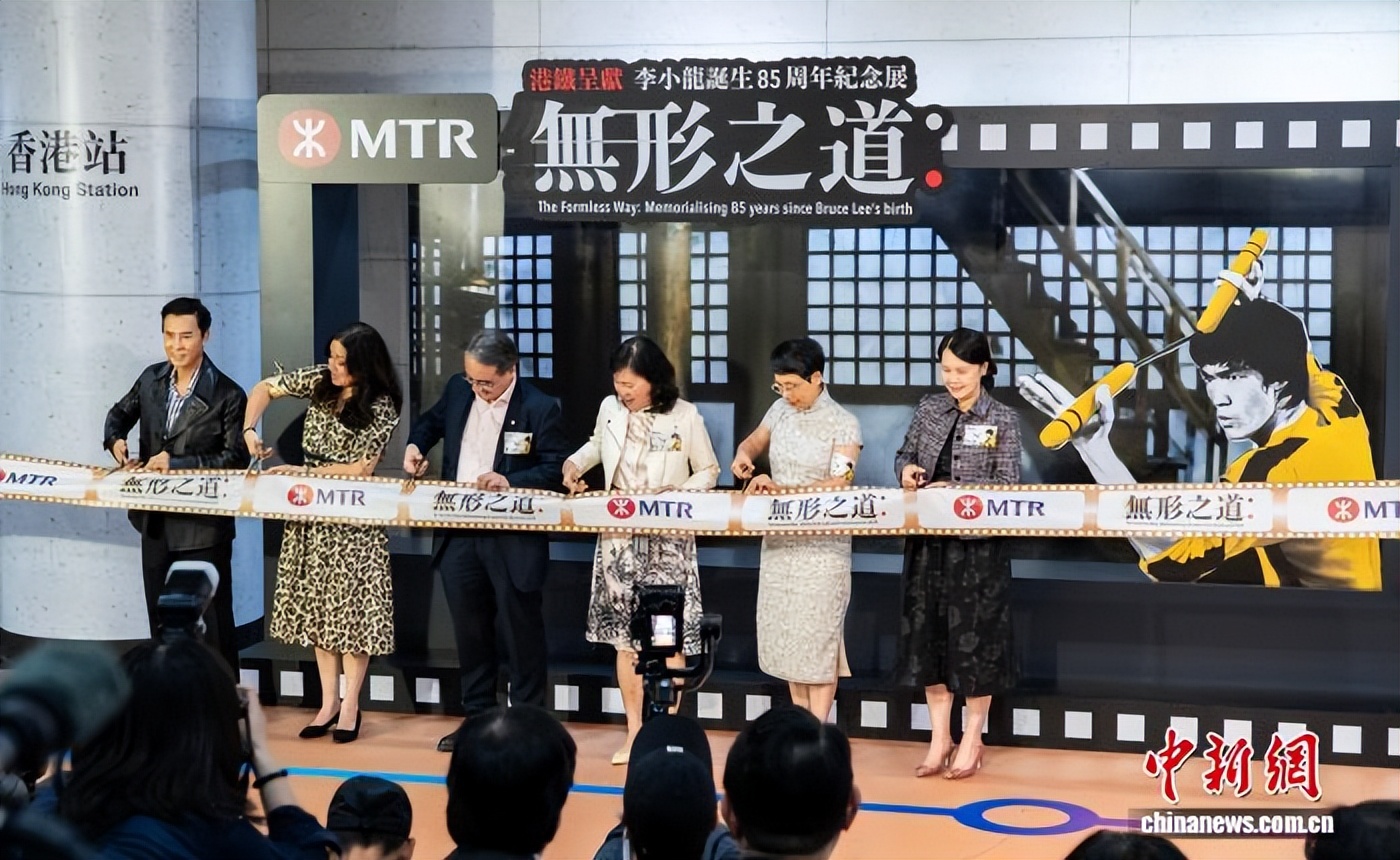 11月24日,“无形之道:李小龙诞生85周年纪念展”揭幕仪式在港铁香港站内举行,此次展览由港铁公司联合李小龙基金会、香港文化博物馆主办,在港铁香港站和中环站内设有互动体验区和主题特展区,从电影、武术、哲学和艺术四个方面向市民及游客展示李小龙的武术精神和人生哲学。展览从11月25日至12月8日向公众开放。图为香港特区政府运输及物流局局长陈美宝(右三),港铁公司行政总裁金泽培(左三),李小龙基金会创办人兼会长、李小龙之女李香凝(Shannon Lee,左二),动作影视明星甄子丹(左一)等嘉宾为展览剪彩。中新网记者 侯宇 摄