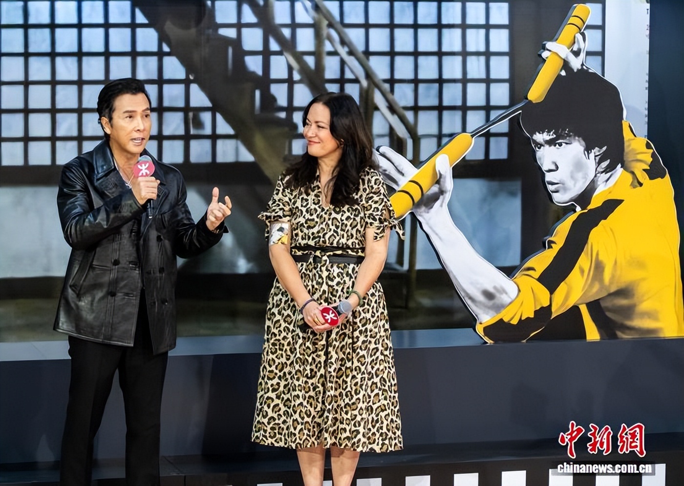 图为李小龙基金会创办人兼会长、李小龙之女李香凝(Shannon Lee,右)和动作影视明星甄子丹在揭幕仪式上回答提问。中新网记者 侯宇 摄