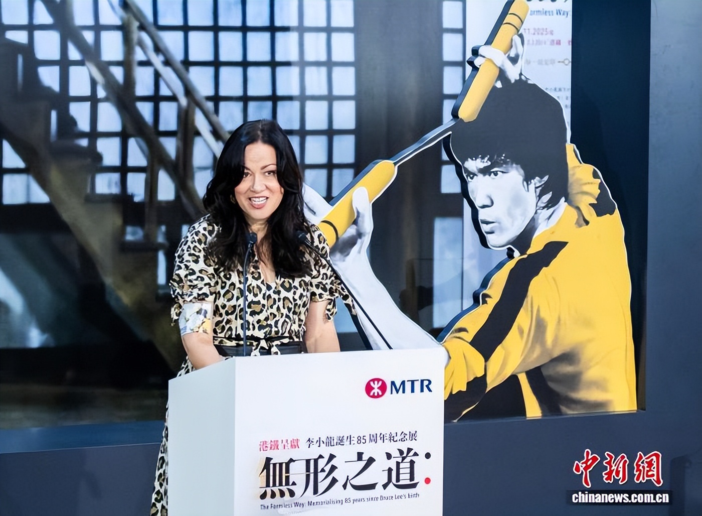 图为专程前来的李小龙基金会创办人兼会长、李小龙之女李香凝(Shannon Lee)在展览揭幕仪式上致辞。中新网记者 侯宇 摄