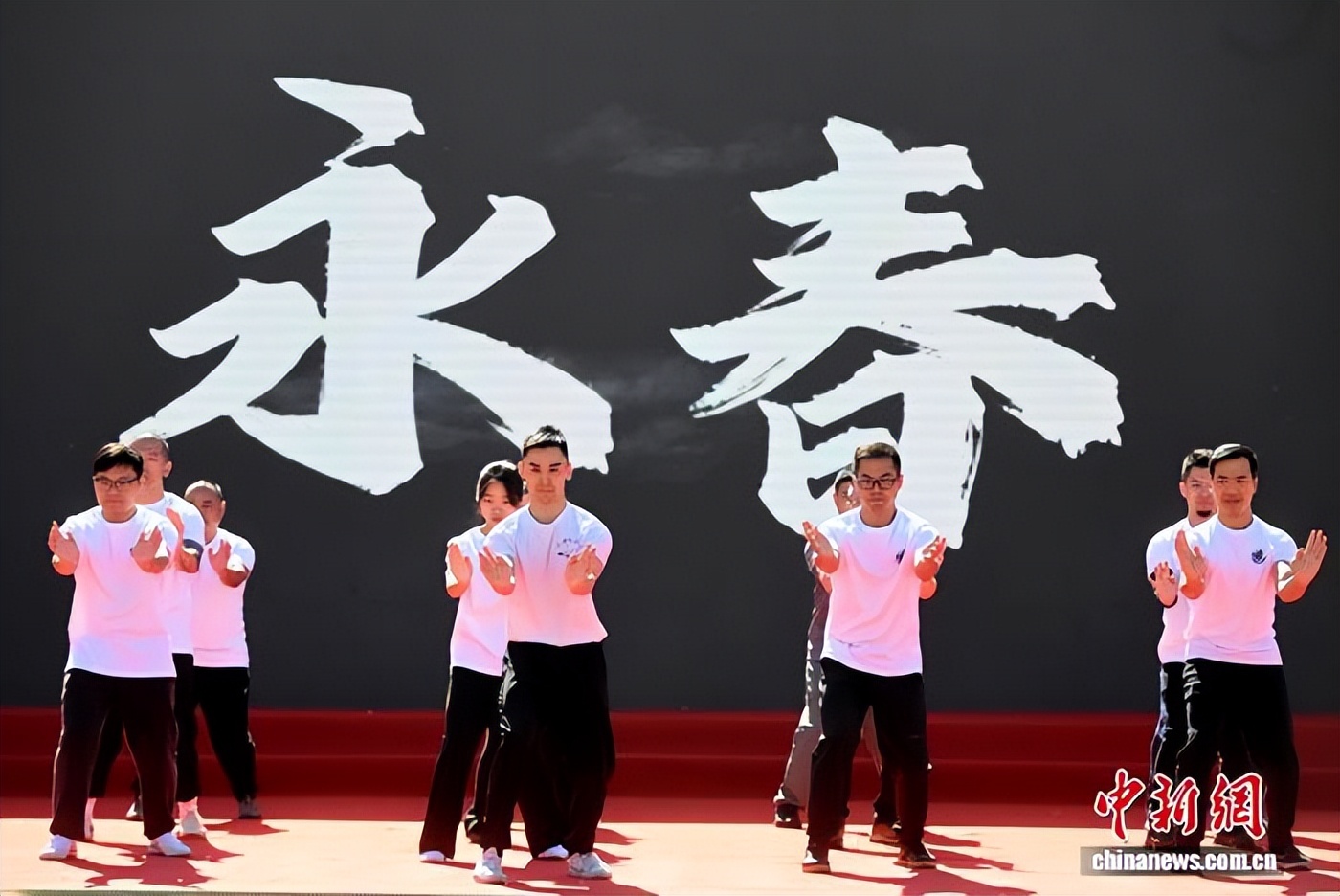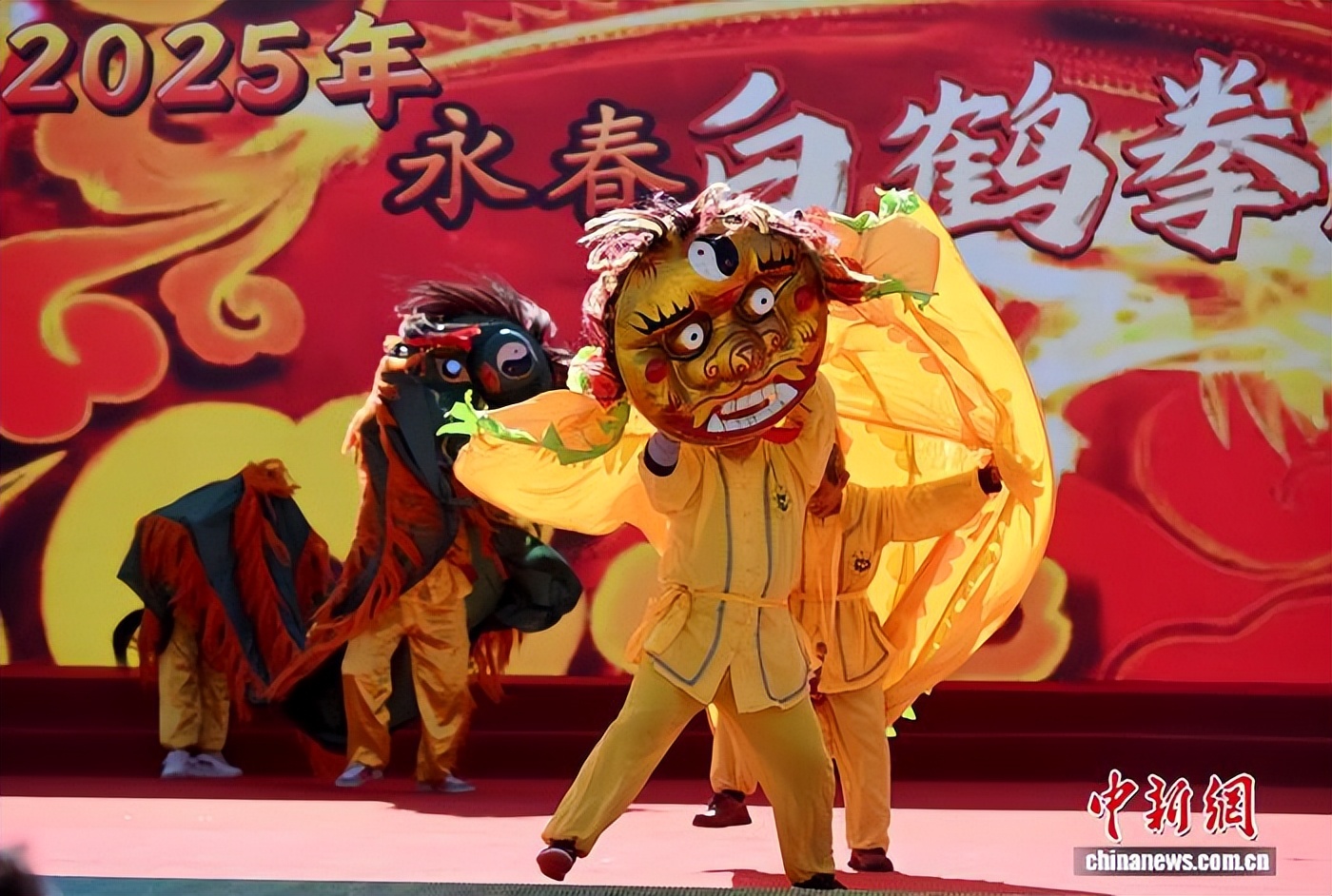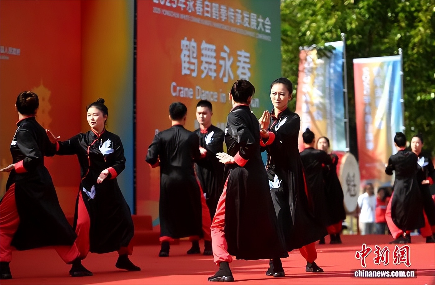 11月24日,2025年永春白鹤拳传承发展大会在福建永春举办。图为广东、香港武术团体上台表演。中新社记者 吕明 摄