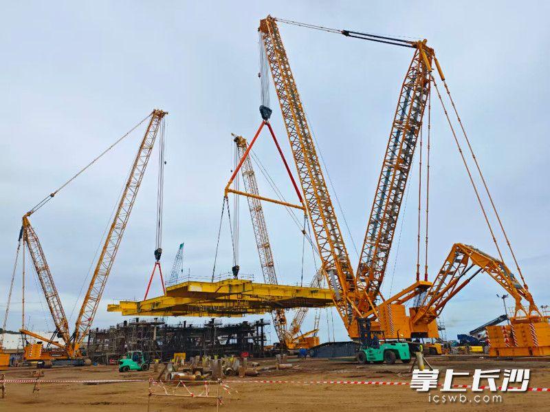 长沙晚报掌上长沙11月25日讯(全媒体记者 匡小娟)11月25日,记者从三一集团获悉,三一出口至印尼的SCC12500A履带起重机近日在雅加达顺利完成首吊。据悉,SCC12500A履带起重机是目前我国出口印尼的最大吨位履带起重机。首吊现场,SCC12500A履带起重机与SCC5000A、SCC4000A起重机进行三机抬吊,完成了500吨重钻井平台底座的精准对接,三台设备配合过程中稳定、灵敏、精准。