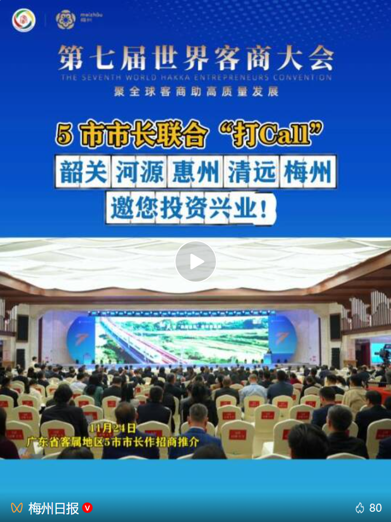 ▲ 广东省客属地区(韶关、河源、惠州、清远、梅州)5市市长作招商推介