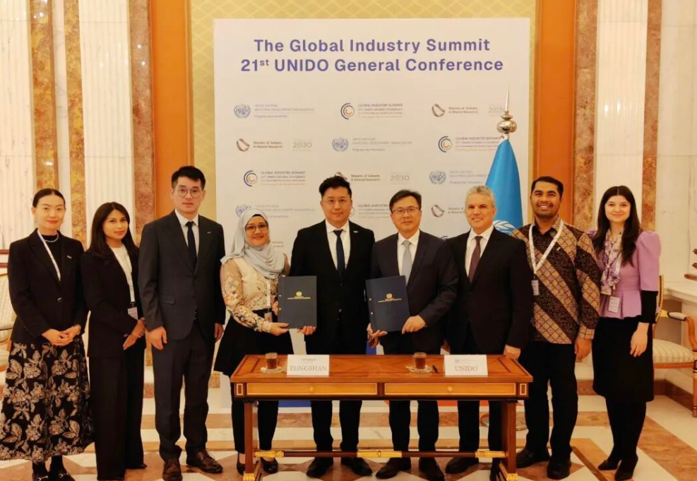 雅加达讯 11 月 24 日,青山实业及印尼园区代表应联合国工业发展组织(UNIDO)邀请,赴沙特利雅得出席 UNIDO 第二十一届成员国大会暨全球工业峰会,并与 UNIDO 正式签署《镍产业链可持续发展联合宣言》。双方将以印尼莫罗瓦利园区(IMIP)、纬达贝园区(IWIP)为试点,开启为期三年的首期合作,助力镍行业可持续发展。