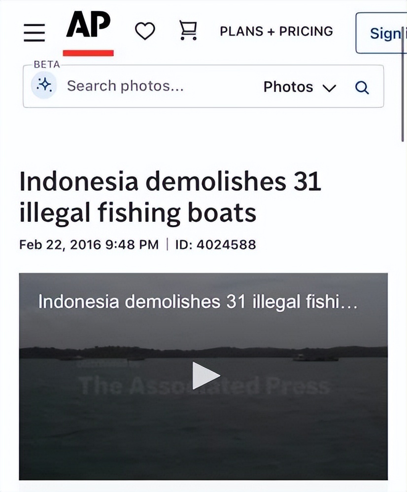 截取网传视频关键帧进行反搜,发现该视频在2016年2月22日就已经出现。美联社等多家媒体当时报道称,该视频展示了“印尼政府炸毁31艘非法渔船”。