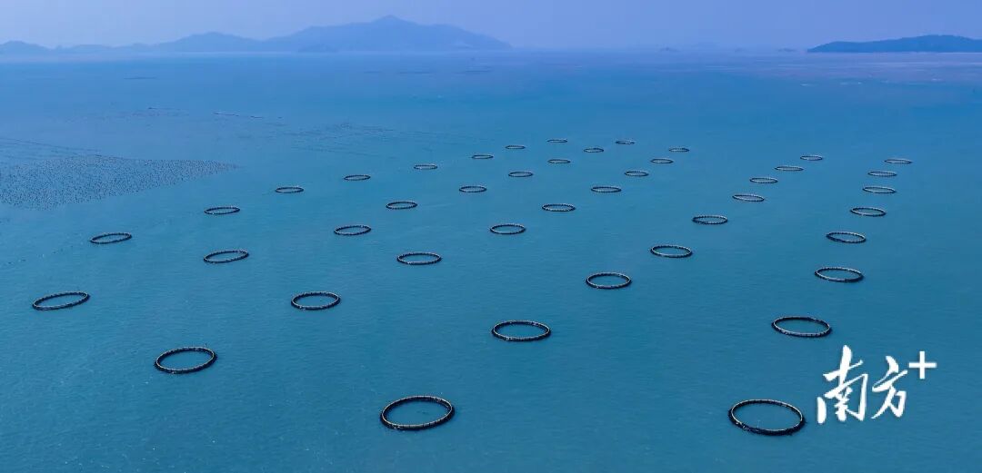 饶平海面上漂浮着重力式深水网箱,这是近年来潮州海水养殖业疏近用远、生态发展取得的新成果。黄品摄