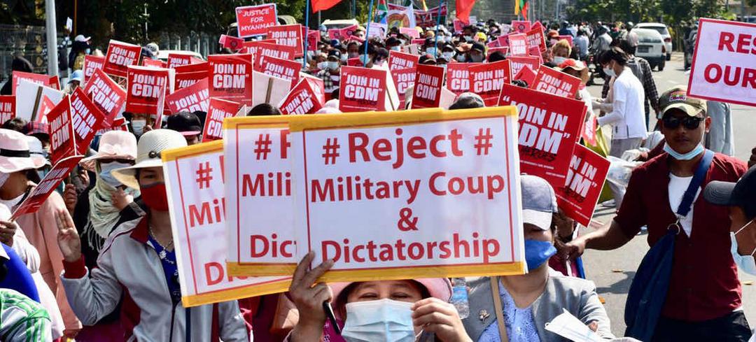 缅甸人民示威抗议军方发动政变推翻民主政府。(档案照)