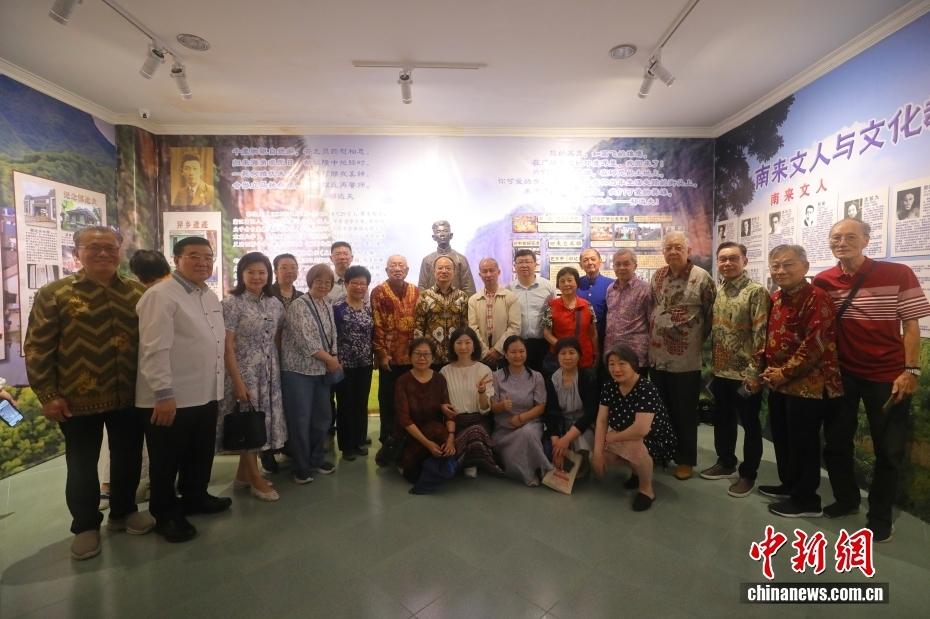 当地时间12月1日,郁达夫纪念馆开幕仪式在印度尼西亚苏门答腊棉兰举行。纪念馆正中央矗立着郁达夫铜像。展厅一侧的整面展墙按“家园”“婚姻”“求学生涯”“文学创作”“抗战时期”“流亡印尼苏岛”等板块展开,系统呈现郁达夫的一生。图为嘉宾与郁达夫铜像合影。中新社记者 李志全 摄
