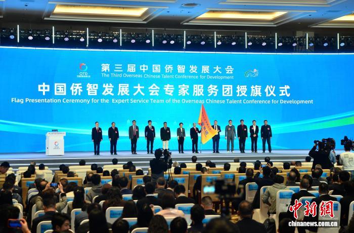 12月1日,第三届中国侨智发展大会在福建福州正式开幕。本届大会以“五洲聚福汇侨智·同心共圆中国梦”为永久主题,以“侨汇天下才·智创新时代”为年度主题,汇聚海内外侨界英才、专家学者、侨商侨领及企业代表等共话合作、共谋发展。图为开幕式上举行“中国侨智发展大会专家服务团”授旗仪式。中新社记者 张斌 摄