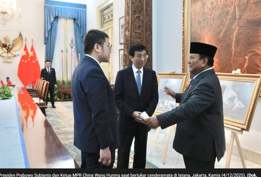 12月4日,普拉博沃总统在雅加达独立宫会见来访的中共中央政治局常委、全国政协主席王沪宁。双方在会谈中就深化双边战略合作、推动两国关系持续发展等议题交换了意见。